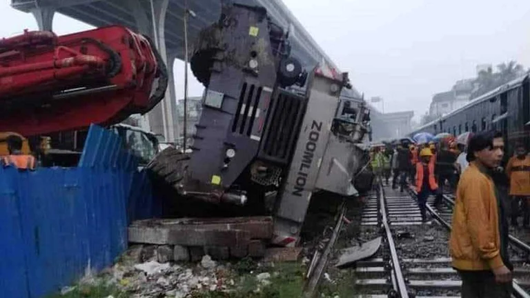 “The train collided with a crane working on the Elevated Expressway in the Nakhalpara area a little after 4:30 pm,” said Sub Inspector Sekandar Ali of the railway police. “Three carriages derailed. The engine was damaged. Train service to Dhaka has been suspended.”