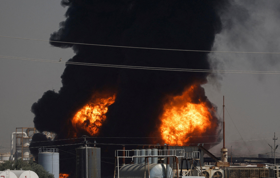 Baghdad: A massive fire broke out at the asphalt storage facility of an oil refinery in Erbil province, northern Iraq, last night.