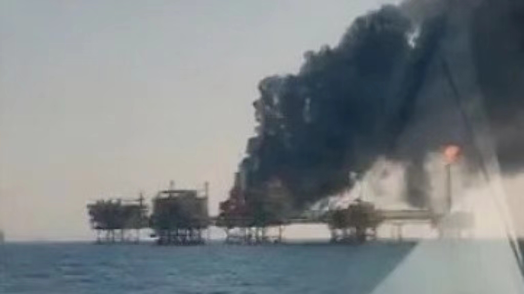Videos and photographs apparently taken from a boat near the platform and shared on social media showed huge plumes of black smoke rising from oil and gas infrastructure. Reuters was not able to independently verify the content.