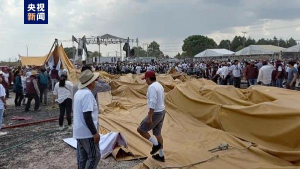 At least 58 people were injured after a tarp fell during strong winds at a mayoral election campaign event in central Mexico on Sunday, local media reported, citing police.