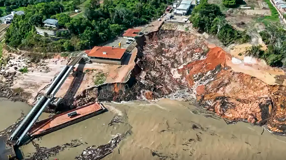 The Military Firefighters Corps of the State of Rio de Janeiro said that the land supporting part of the Terra Preta Port, located on the banks of the Amazon River, slid due to unknown reasons. Although the area was under construction, the port continued to operate as a key transportation point.