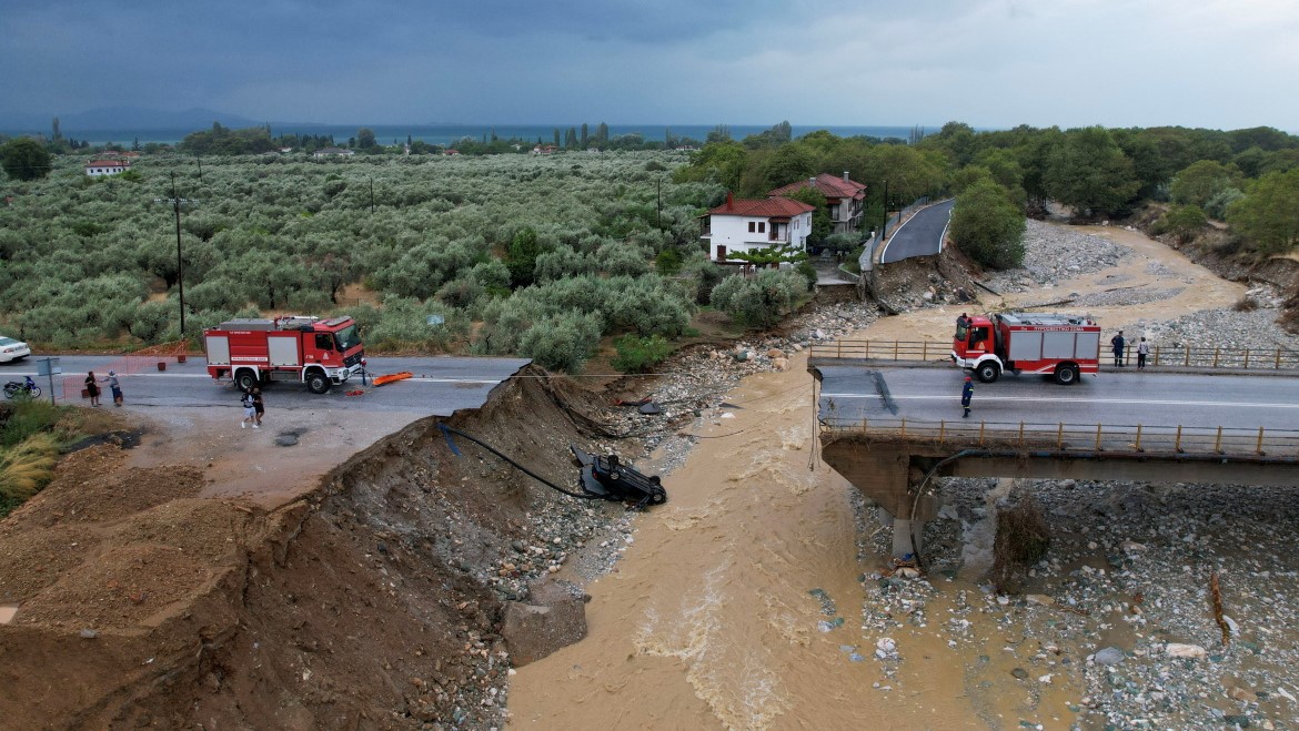 当地时间2023年9月7日,希腊Agria,当地遭遇强降雨并引发洪灾,桥梁坍塌。