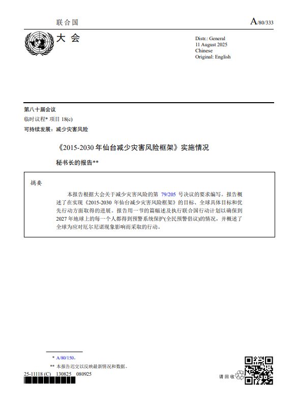 2025年减少灾害风险全球评估报告