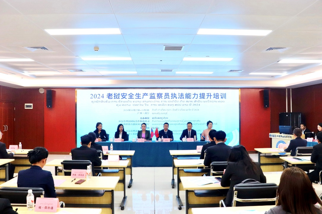 据介绍,此次培训由中国应急管理部国际合作和救援司、广西壮族自治区应急管理厅联合主办,应急管理部信息研究院、广西安全工程职业技术学院承办。在前期筹备培训班期间,中老双方深入沟通,针对老方的安全生产能力、职业健康方面的实际需求,将培训分为课堂学习和现场观摩两部分。