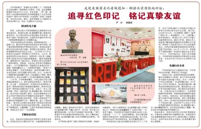 近日,笔者在总经理冯彦兵的带领下走进中安宾馆,发现红色历史元素无处不在:从庭院里的斯诺夫妇雕像、墙壁上悬挂的历史照片,到房间里摆放的《红星照耀中国》书籍以及杯子、床头柜、房卡套上印着的斯诺肖像,无不给中外旅客留下深刻印象。“我们希望中外来访者通过宾馆和纪念馆,深入了解斯诺以及写作《红星照耀中国》的历史背景和深远影响。”冯彦兵说。